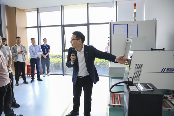 星云股份副董事長(zhǎng)兼總裁劉作斌帶領(lǐng)客戶(hù)嘉賓參觀、體驗(yàn)電動(dòng)自行車(chē)、電動(dòng)摩托車(chē)電池檢測(cè)
